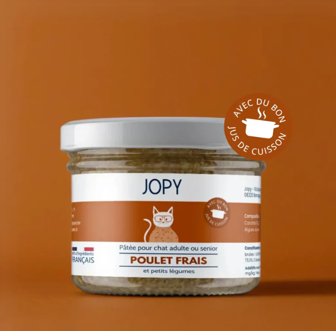 Formulé par des vétérinaires experts en nutrition féline, cette pâtée est conçue à partir d'abats nobles de poulet français et de légumes issus de l'agriculture biologique.