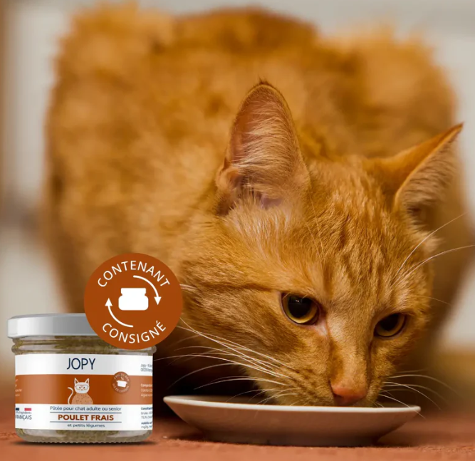 Pour une conservation optimale et respectueuse de la planète, nos pâtées sont conditionnées dans des bocaux en verre consignés , réutilisables et facilement refermables.