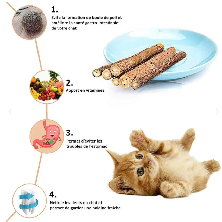 Frottez doucement l'écorce du bâton de Matatabi pour libérer les essences naturelles, puis donnez-les à votre chat pour qu'il en profite. Il jouera, roulera, se frottera et s'amusera !