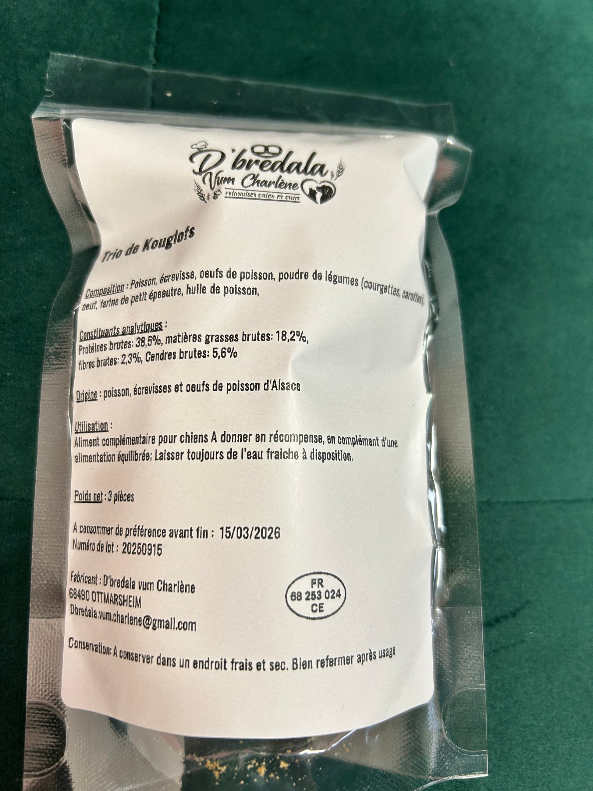 Ces friandises uniques sont préparées à la main avec des ingrédients naturels et locaux, dont du poisson frais issu exclusivement d'Alsace. Naturellement riches en protéines et en bonnes matières grasses, ces petites douceurs soutiennent la vitalité, la musculature et la beauté du pelage de votre animal.